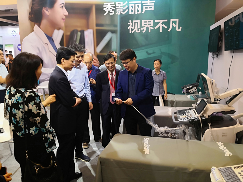 中華醫(yī)學(xué)會超聲分會主任委員姜玉新教授一行參觀開立展臺